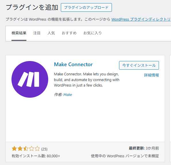 ※先にWORDPRESS側に「Make Connector」を入れておきます。